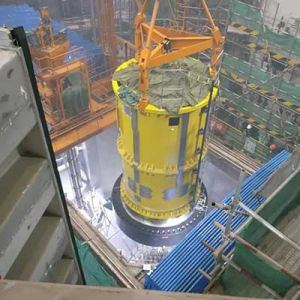 ? ? ? ?4月19日17時53分,“華龍一號”全球首堆示范工程福清核電5號機組壓力容器頂蓋就位于...